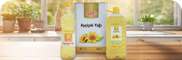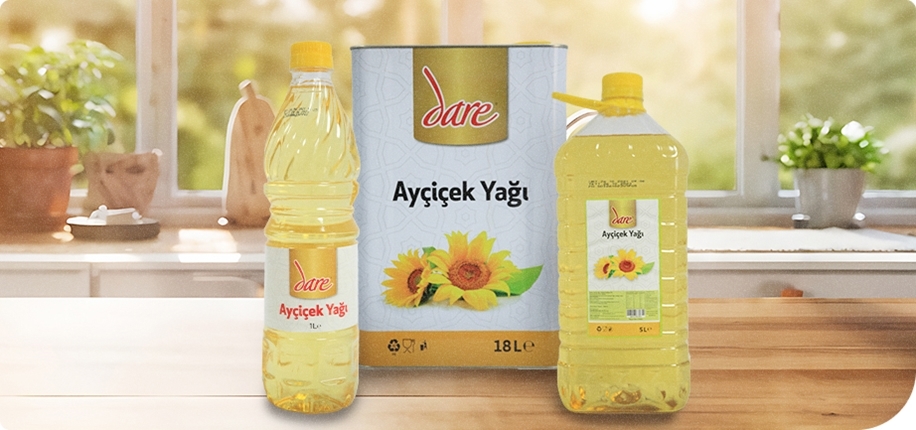We offer sunflower oil, an essential ingredient in our kitchens, in packages of 1l, 2l, 3l, 5l, and 18l packages under our Dare brand for the enjoyment of our consumers. Produced from sunflower seeds known for their high oil content and richness in vitamin E, our products add flavor to every dish.